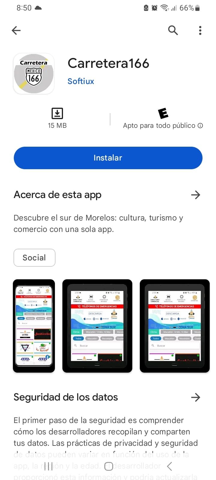 Durante mis prácticas profesionales en Softiux, participé en el desarrollo de una aplicación móvil enfocada en la exposición de servicios de negocios locales. El objetivo del proyecto fue crear una plataforma que permitiera a los usuarios descubrir establecimientos cercanos y conocer los servicios que ofrecen. La aplicación fue pensada como una herramienta para fomentar el turismo y el consumo local, facilitando que visitantes y habitantes de la zona encuentren opciones de restaurantes, servicios y comercios de manera rápida desde su dispositivo móvil.