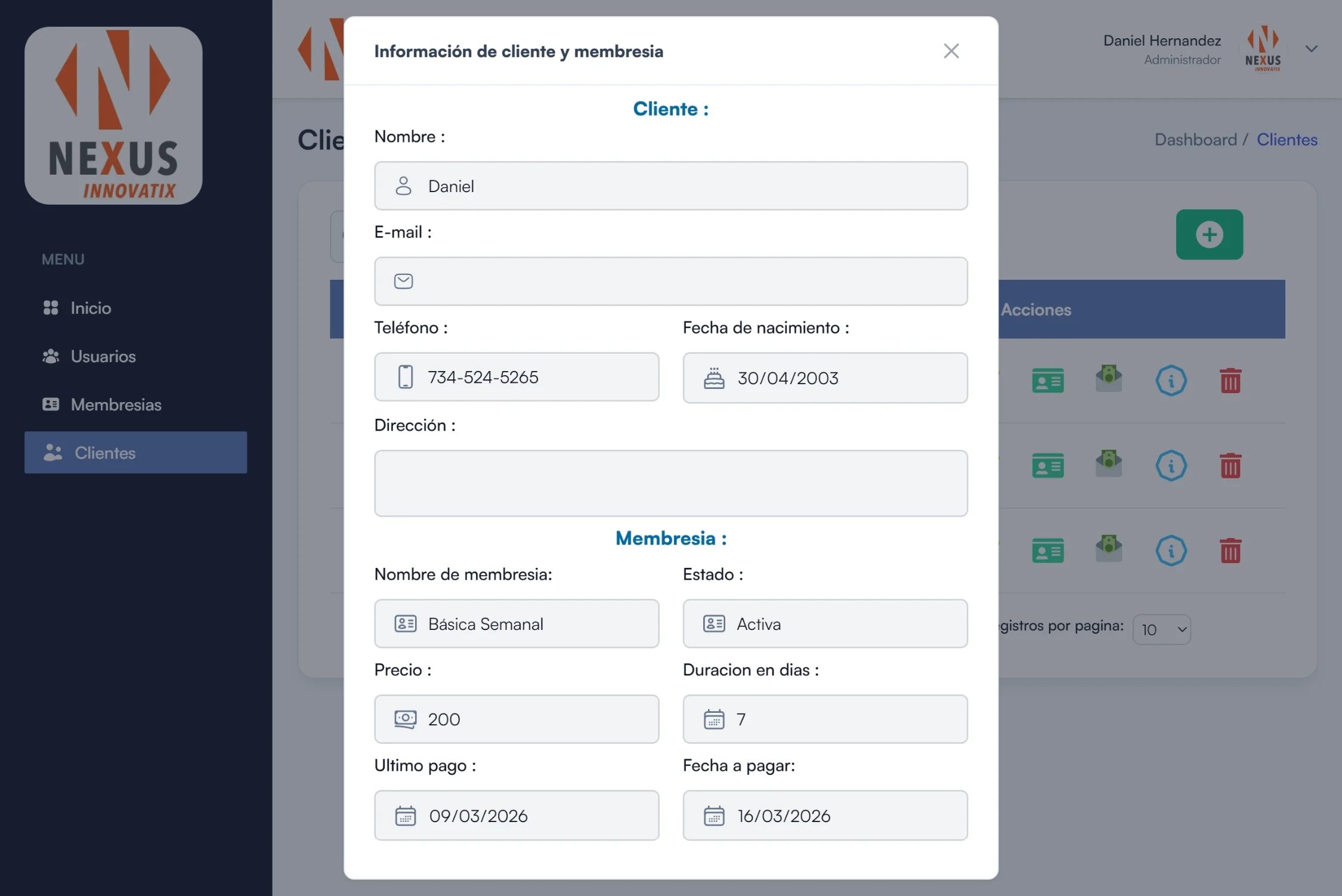 Desarrollé un sistema web para la gestión de membresías de gimnasio, creado para facilitar el control de usuarios, pagos y vigencia de suscripciones. El objetivo del proyecto fue reemplazar el control manual por una herramienta digital que permitiera administrar la información de forma más ordenada y eficiente.