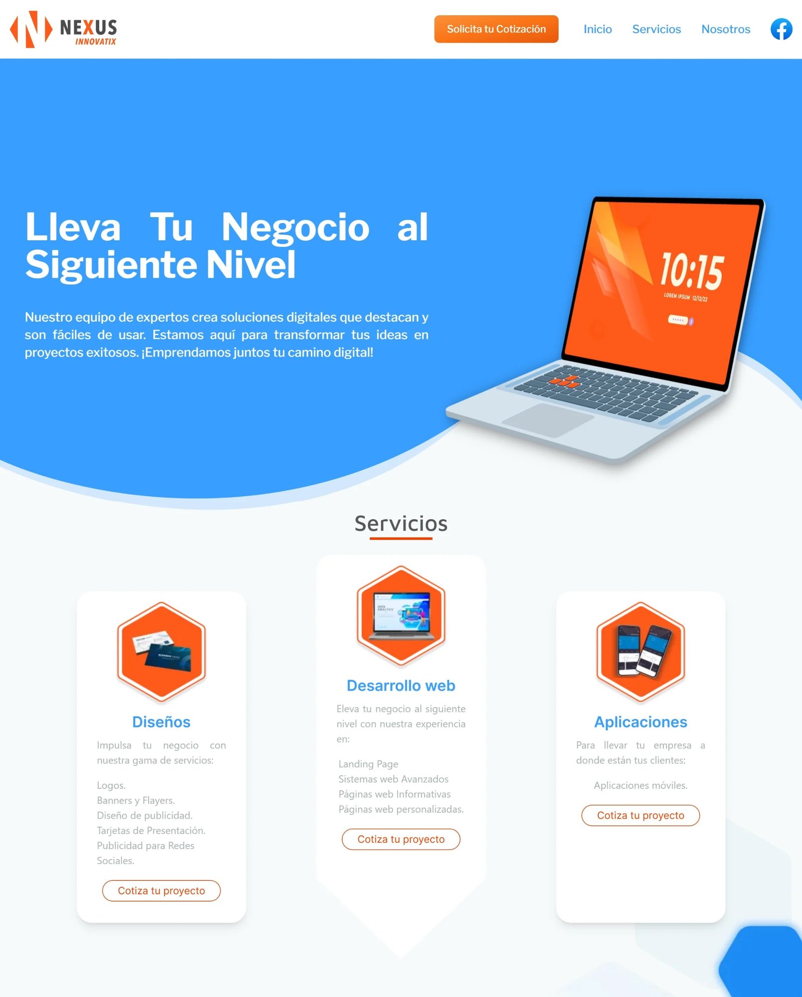 Desarrollé Nexus Innovatix como un proyecto personal enfocado en ofrecer servicios de desarrollo web a pequeños negocios y emprendedores. El objetivo principal fue crear una plataforma que me permitiera captar clientes reales, aplicar mis conocimientos en proyectos profesionales y al mismo tiempo generar experiencia práctica mientras estudiaba la universidad.