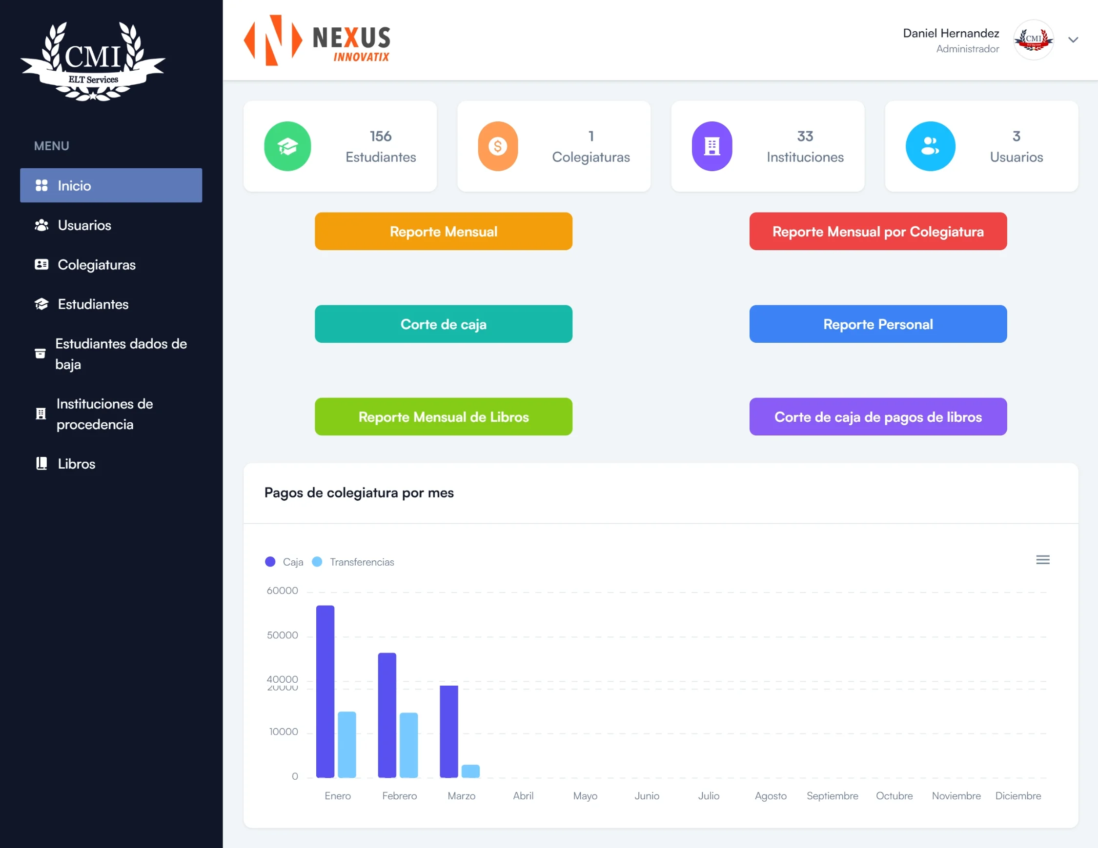 Desarrollé un sistema web para la gestión y control de pagos de colegiaturas para el colegio de inglés CMI. La plataforma fue diseñada para facilitar la administración financiera y el seguimiento de los pagos de los estudiantes de manera organizada y segura.